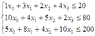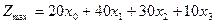 Целевая функция: | (коэффициенты получены транспонированием столбца свободных коэффициентов) |
