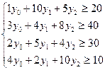 Ограничения: | (столбец свободных коэффициентов получен транспонированием коэффициентов целевой функции, основная матрица новои системы получена транспонированием основной матрицы исходной задачи.) |