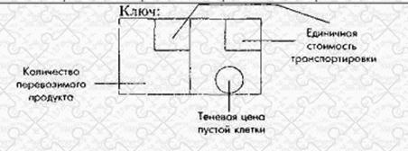2. Выбирается строка или столбец с наибольшим значением штрафной стоимости, и в клетку с наименьшим значением стоимости перевозки для данной строки и столбца помещается наибольшее возможное количество продукта. Такая процедура позволяет избежать назначения высоких штрафов.