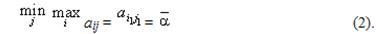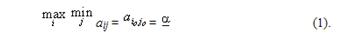 т.е. определяется max выигрыш игрока 1, при условии, что игрок 2 применит свою j-ю чистую стратегию, затем игрок 2 отыскивает такую свою j = j1 стратегию, при которой игрок 1 получит min выигрыш, т.е. находит