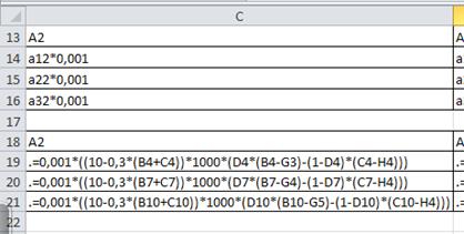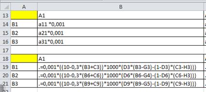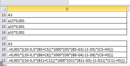 После введенных данных определим на том же листе формулы для расчета.