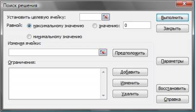 Теперь всё готово, и можно искать решение. Вызываем меню «Поиск решения», открывается такое окно: