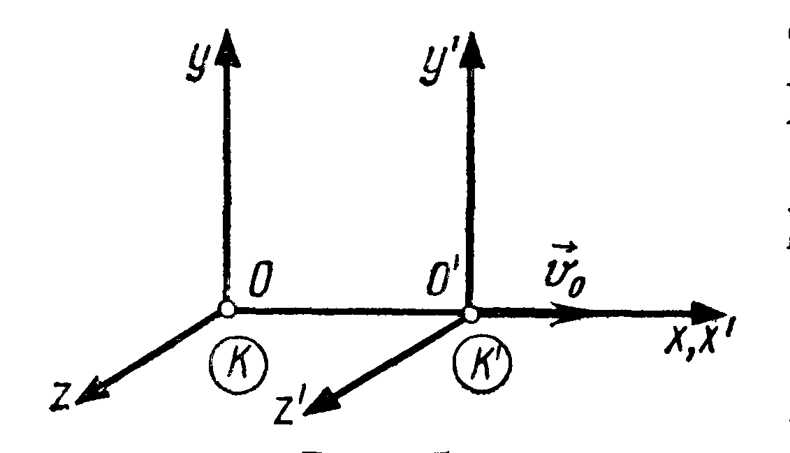 В специальной теории относительности рассматриваются только инерциальные системы отсчета. Во всех задачах считается, что оси у, у' и z, z' сонаправлены, а относительная скорость v 0 системы координат К' относительно системы К направлена вдоль общей оси хх'.