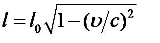 где l 0 — длина стержня в системе координат К',относительно которой стержень покоится (собственная длина). Стержень параллелен оси х'; l— длина стержня, измеренная в системе К,относительно которой он движется со скоростью
