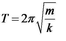 где m — масса тела; k — жесткость пружины. Формула справедлива для упругих колебаний в пределах, в которых выполняется закон Гука (при малой массе пружины в сравнении с массой тела).