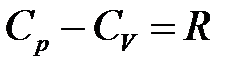 · Молярные теплоемкости при постоянном объеме и постоянном давлении соответственно равны (в целях упрощения записи в индексах обозначений молярной теплоемкости при постоянном давлении и постоянном объеме букву «