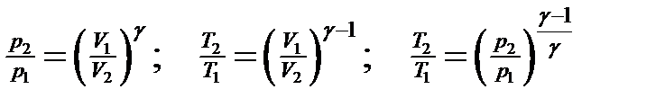 · Связь между начальным и конечным значениями параметров состояний газа при адиабатном процессе: