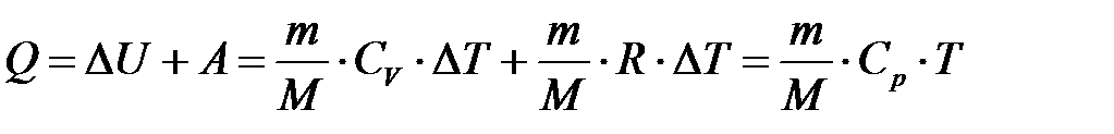 где Q – количество теплоты, сообщённое газу; DU —изменение его внутренней энергии; А — работа, совершаемая газом против внешних сил.
