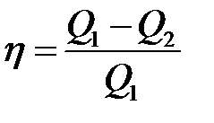 где Q 1 – количество теплоты, полученное рабочим телом (газом) от нагревателя; Q 2 – количество теплоты, переданное рабочим телом охладителю.