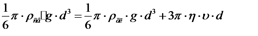 При установившемся движении шарика в жидкости (υ = const) сила тяжести шарика уравновешивается суммой выталкивающей силы и силы внутреннего трения, т. е.