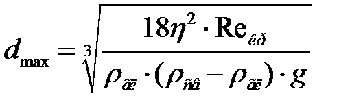 гл = 1260 кг/м3 и произведя вычисления, получим dmax = 5,29 мм.