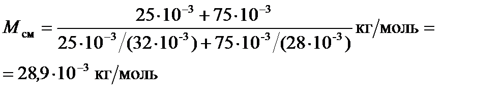 Пример 4. Найти молярную массу М смеси кислорода массой m 1 = 25 г и азота массой m 2=75 г.