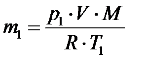 Из баллона объемом V =60 л, содержащего сжатый воздух при давлении p1 =7,5 МПа и температуре t1, постепенно выпускают массу воздуха m =2,6 кг. После закрытия крана давление воздуха в баллоне p2 =3,5 МПа, температура t2 = -25 0C. Определить температуру t1.