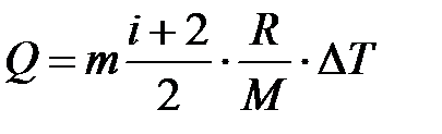 Водород находился при p1 =1750 кПа в объеме V1 =0,33 м3, а при изменении объёма до V2 =0,68 м3 давление его стало равным p2 =250 кПа. Переход от первого состояния ко второму был сделан в два этапа: сначала по изохоре, а затем по адиабате. Приращение внутренней энергии ?U, работа газа А. Определить количество поглощенного тепла Q.