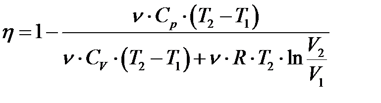 Цикл, совершаемый одним киломолем идеального двухатомного газа, состоит из двух изохор и двух изобар. Совершаемая газом за цикл работа равна А, количество полученного за цикл тепла Q. Минимальные значения объёма и давления равны V1 =0,075 м3, p1 =330 кПа, максимальные - V2 =0,135 м3, p2 =460 кПа. Определить работу А.