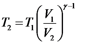 В цилиндре под поршнем находится водород m =0,02 кг при температуре 300 К. Водород сначала расширился адиабатически, увеличив свой объём в пять раз, а затем был сжат изотермически, причем объём газа уменьшился в пять раз. Найти температуру в конце адиабатического расширения и полную работу, совершенную газом. Изобразить процесс графически.