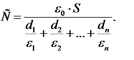 Электрическая емкость плоского конденсатора, заполненного п слоями диэлектрика толщиной di каждый с диэлектрическими проницаемостями