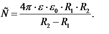· Электрическая емкость сферического конденсатора (две концентрические сферы радиусами R 1и R 2, пространство между которыми заполнено диэлектриком с диэлектрической проницаемостью ε)