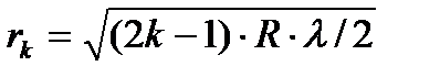где k – номер кольца (k =1,2,3,…); R – радиус кривизны поверхности линзы, соприкасающейся с плоскопараллельной стеклянной пластинкой.