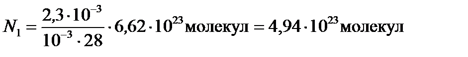 Пример 1. В баллоне вместимостью V =6,9 л находится азот массой m =2,3 г. При нагревании часть молекул диссоциировали на атомы. Коэффициент диссоциации a =0,2. Определить: 1) общее число N 1 молекул и концентрацию n 1 молекул азота до нагревания; 2) концентрацию n 2 молекул и n 3 атомов азота после нагревания.