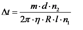 Пример 4. Два тонкостенных коаксиальных цилиндра длиной l= 10 см могут свободно вращаться вокруг их общей оси z. Радиус R большого цилиндра равен5 см. Между цилиндрами имеется зазор размером d=2 мм. Оба цилиндра находятся в воздухе при нормальных условиях. Внутренний цилиндр приводят во вращение с постоянной частотой n 1=20 с-1. Внешний цилиндр заторможен. Определить, через какой промежуток времени с момента освобождения внешнего цилиндра он приобретет частоту вращения n 2 = 1c-1. При расчетах изменением относительной скорости цилиндров пренебречь. Масса m внешнего цилиндра равна100 г.