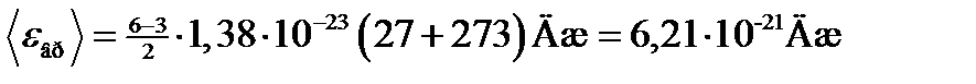 Пример 5. Найти среднюю кинетическую энергию одной молекулы аммиака NH3 при температуре t=27 °С и среднюю энергию вращательного движения этой молекулы при той же температуре.