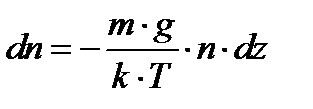 Пример 6. Пылинки массой m =10-18 г взвешены в воздухе. Определить толщину слоя воздуха, в пределах которого концентрация пылинок различается не более чем на 1 %. Температура Т воздуха во всём объеме одинакова и равна 300 К.