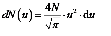 Решение. Для решения задачи удобно воспользоваться распределением молекул по относительным скоростям u (u = υ/υ в). Число d N (u) молекул, относительные скорости и, которых заключены в пределах от u до d u, определяется формулой