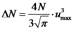 По условию задачи, максимальная скорость интересующих нас молекул υ max=0,001 υ в, откуда u max= υ max/ υ в=0,001. Для таких значений и выражение (1) можно существенно упростить. В самом деле, для u «1 имеем е-2»1- u 2. Пренебрегая значением u 2 = (0,001)2=10-6 по сравнению с единицей, выражение (1) запишем в виде