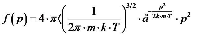 Функция распределения молекул по импульсам имеет вид