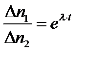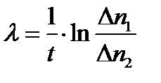 где t — время, прошедшее от первого до второго измерения. Для вычисления l выражение (3) следует прологарифмировать: ln(∆ n 1/∆ n 2)= λ∙t, откуда