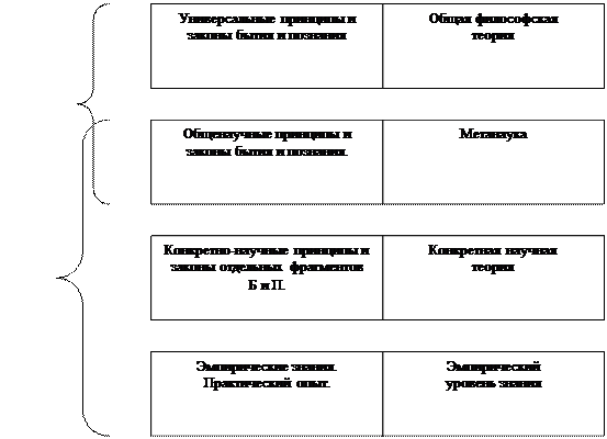 Наибольшей ясностью и однозначностью определения предмета философии отличается материализм. Он всегда полагал предметом философского познания не только "бытие как таковое", но и "познание вообще". Любой вид бытия и познания, любая их сторона, аспект могут быть предметом философии, в том числе и материализма. Современная материалистическая философия (и не только она), имея самостоятельный предмет исследования по отношению к науке, охватывает и общую для них область – метанаучные исследования (общенаучные принципы и законы бытия и познания) (рис. 2).