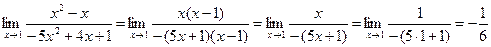 . Для раскрытия неопределённости разложим числитель и знаменатель на множители, и сократим дробь на общий множитель.