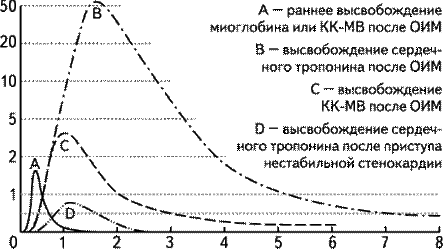 Уровень кардиомаркеров в зависимости от времени после ОИМ