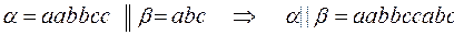 Операция (и результат) приписывания слов a и b друг к другу называется конкатенацией (обозначается a||b). Например, если
