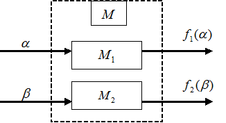 Фактически параллельная композиция двух МТ получает на вход слово, состоящее из 2-х слов в разных алфавитах, и на выходе выдает слово, также состоящее из 2-х слов, т.е. представляет собой две одновременно и независимо работающие машины. Для реализации параллельной композиции используется машина с двухэтажной лентой.