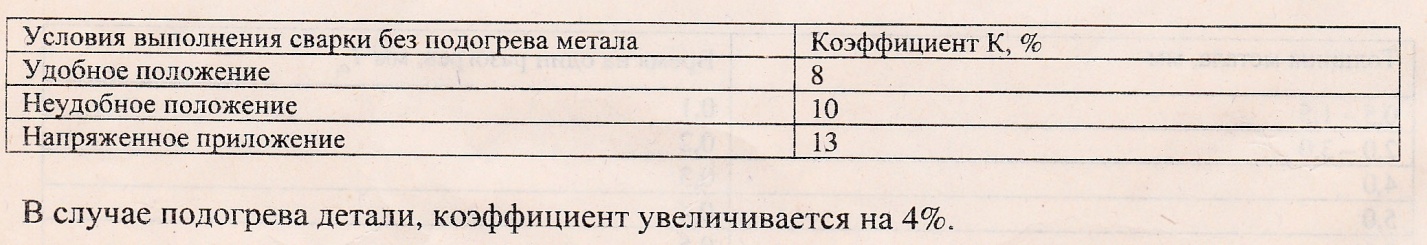 -К-коэффициент повышения дополнительного времени для газосварочных работ, зависит от условий выполнения сварки.