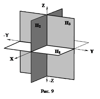 Для удобства проецирования выбирают две (три) взаимно перпендикулярные плоскости проекций (рис.9).