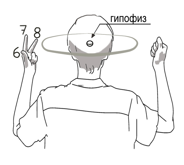 Для этого левую руку нужно держать так, чтобы 7й палец был на уровне гипофиза.