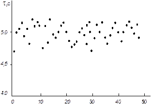 5. Провести многократные измерения интервалов времени электронным секундомером при условии одновременного запуска и остановки электронного и механического секундомеров (50 – 100 раз по заданию преподавателя). Результаты опыта занести в таблицу 5.
