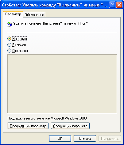 o удаление команд «Выполнить» и «Поиск» из меню Пуск;