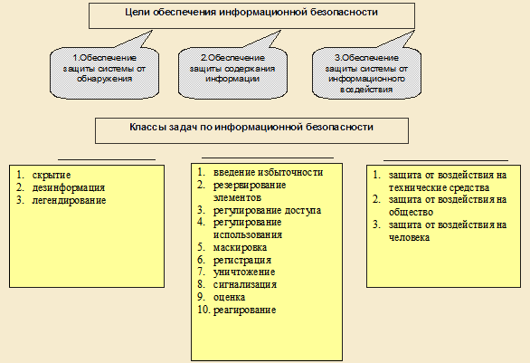 Классификация задач обеспечения информационной безопасности может быть представлена следующей схемой.