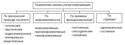 Основным классификационным признаком технических каналов утечки информации является физическая природа носителя. По этому признаку они делятся на:
