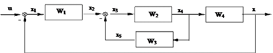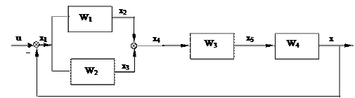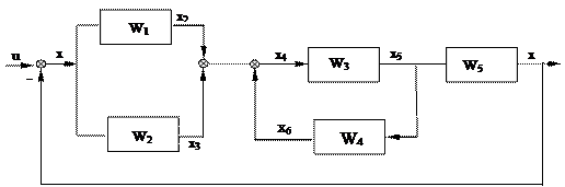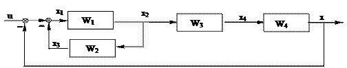 3. Рассчитать передаточную функцию замкнутой САУ относительно выходной величины (х) по входному воздействию (u). Выделить собственный оператор системы и оператор воздействия.