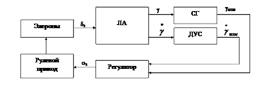 ), регулятор, формирующий сигнал управления (sэ), рулевой привод, приводящий в действие элероны, отклонения которых (dэ) воздействуют на ЛА – летательный аппарат.