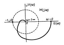 Формулировка критерия Найквиста: Для устойчивости замкнутой системы необходимо и достаточно, чтобы амплитудно-фазовая характеристика устойчивой разомкнутой системы при изменении w от 0 до +¥ не охватывала точку с координатами (- 1, j 0).