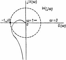 Частотные характеристики, иллюстрирующие критерий Найквиста на рис. 4.4.принадлежат статическим системам, а поведение частотных амплитудно-фазовых характеристик для астатической системы первого порядка представлено на рис. 4.5.