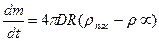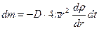 Пусть сферическая капля воды с начальным радиусом R0 находится в воздухе с относительной влажностью f при температуре Т. Скорость испарения капли определяется скоростью диффузии пара из приповерхностного слоя и количества тепла, поступающего к капле извне благодаря теплопроводности и расходуемого на ее исчерпание. Будем считать процесс испарения квазистационарным. На поверхности капли ее пар является насыщенным, температура капли постоянна. Тогда масса dm пара, диффундирующего через произвольную сферическую поверхность радиуса r, концентрическую с поверхностью капли, равна: