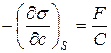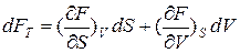 . Процессы в приповерхностном слое, происходящие при неизменной температуре описываются свободной энергией F. Для данной массы раствора свободная энергия зависит от величины поверхности и объема (или концентрации), т.е. FT = F(V,S).