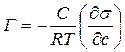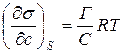 . Если происходит адсорбция, то концентрация зависит от V и от S. Выведем уравнение Гиббса для адсорбции Г, то есть найдем связь между величиной адсорбции и поверхностным натяжением.
